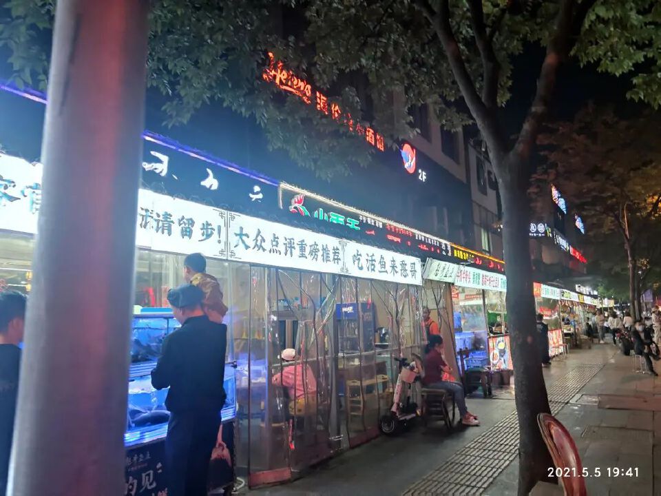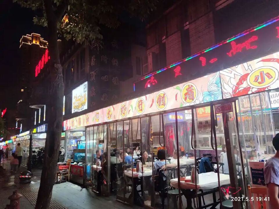 夜色完全笼罩,没有路灯,餐馆的霓虹灯,一闪一闪。一桌一桌的盛况,让我异常兴奋。