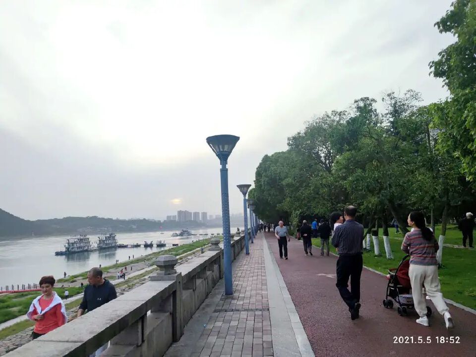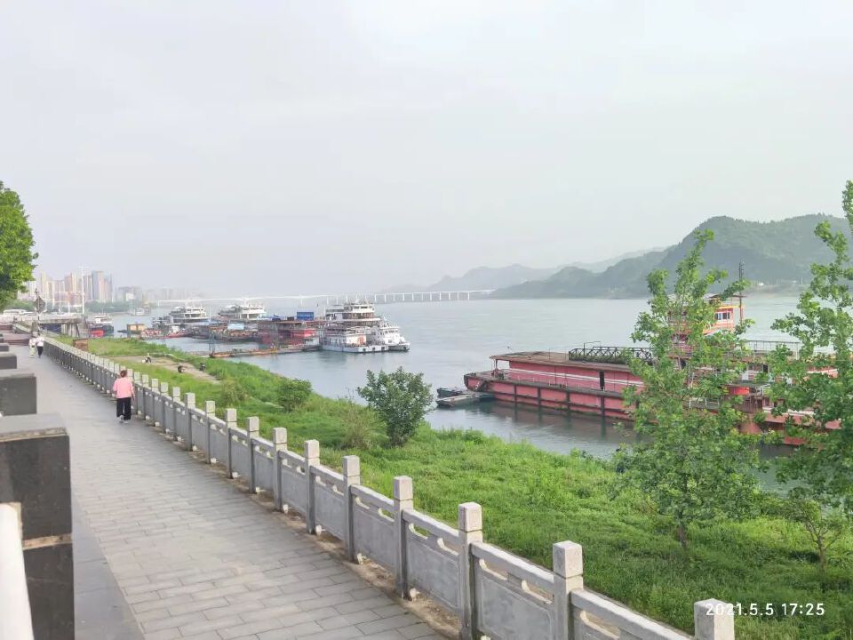 5日沿江风光:17:23和平公园,17:50夷陵长江大桥,继续沿江走走停停,19:37陶珠路夜市,之后解放路步行街19:55回,20:30宜昌东,22点上次回老家。