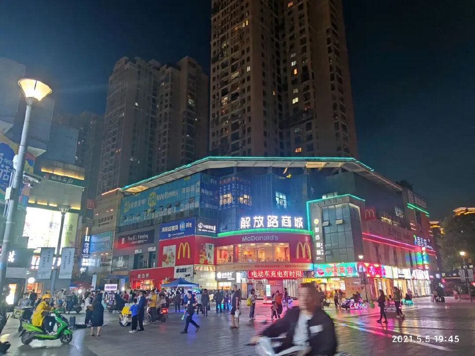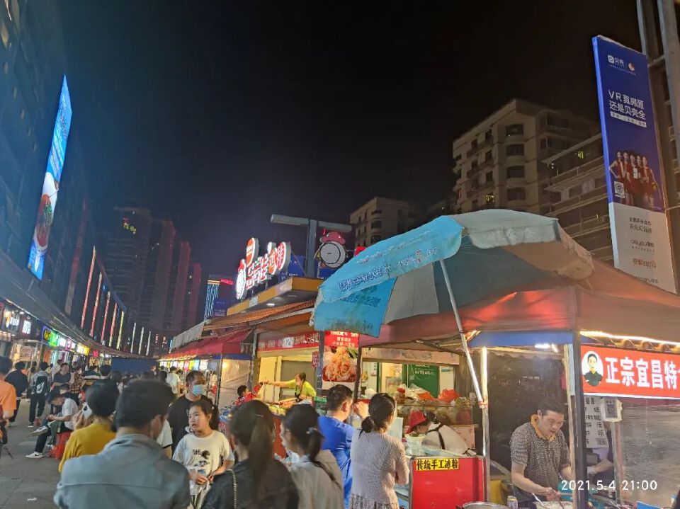 4日晚间入住:19:00宜昌东,20:25星辰商务酒店,21:00楼下万达广场夜市觅食,然后逛一圈。