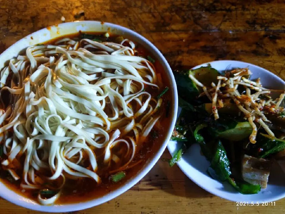 没吃过武汉热干面,都在湖北,这么好吃,肯定是个特色小吃。后面候车时候搜了下:“红油小面”。