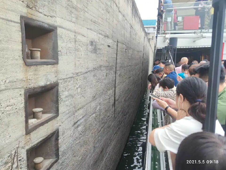 过葛洲坝,全程观感最震撼的一幕:进入闸门,关闸门,水涨船高、驶出大坝。