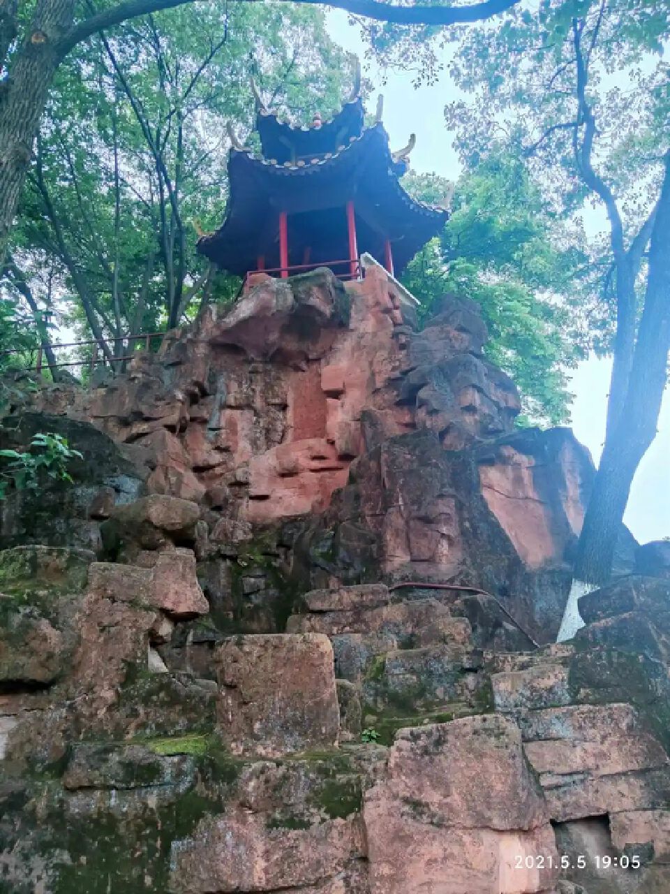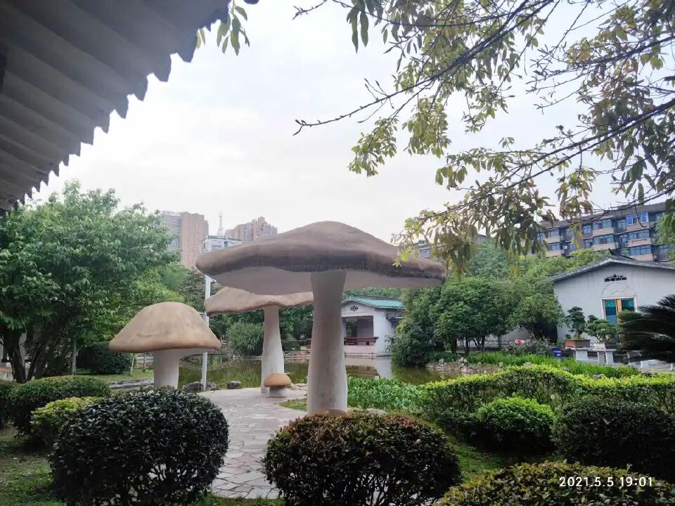 市政府前,又呈现了另一种景象,散步的人多了,公园景致类的也多了。其中,一处假山亭子吸引了我。