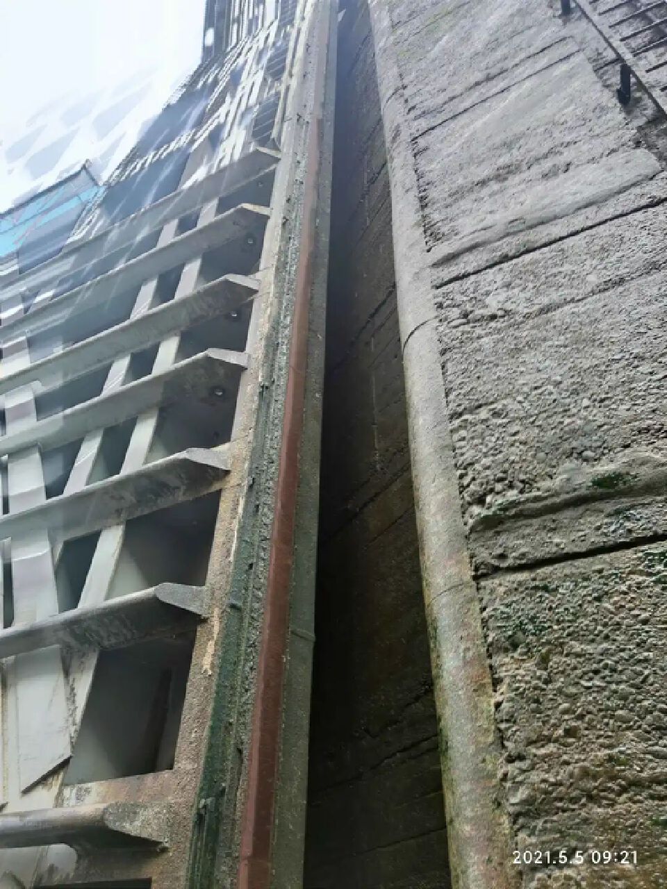 很平常的操作是吧?可是,远远见着的一道横线,走近,却是一道高墙。进入闸门,两边的水道墙壁,粗糙而硬朗,高高的一堵,仰头看,光线成了模糊的炫白。