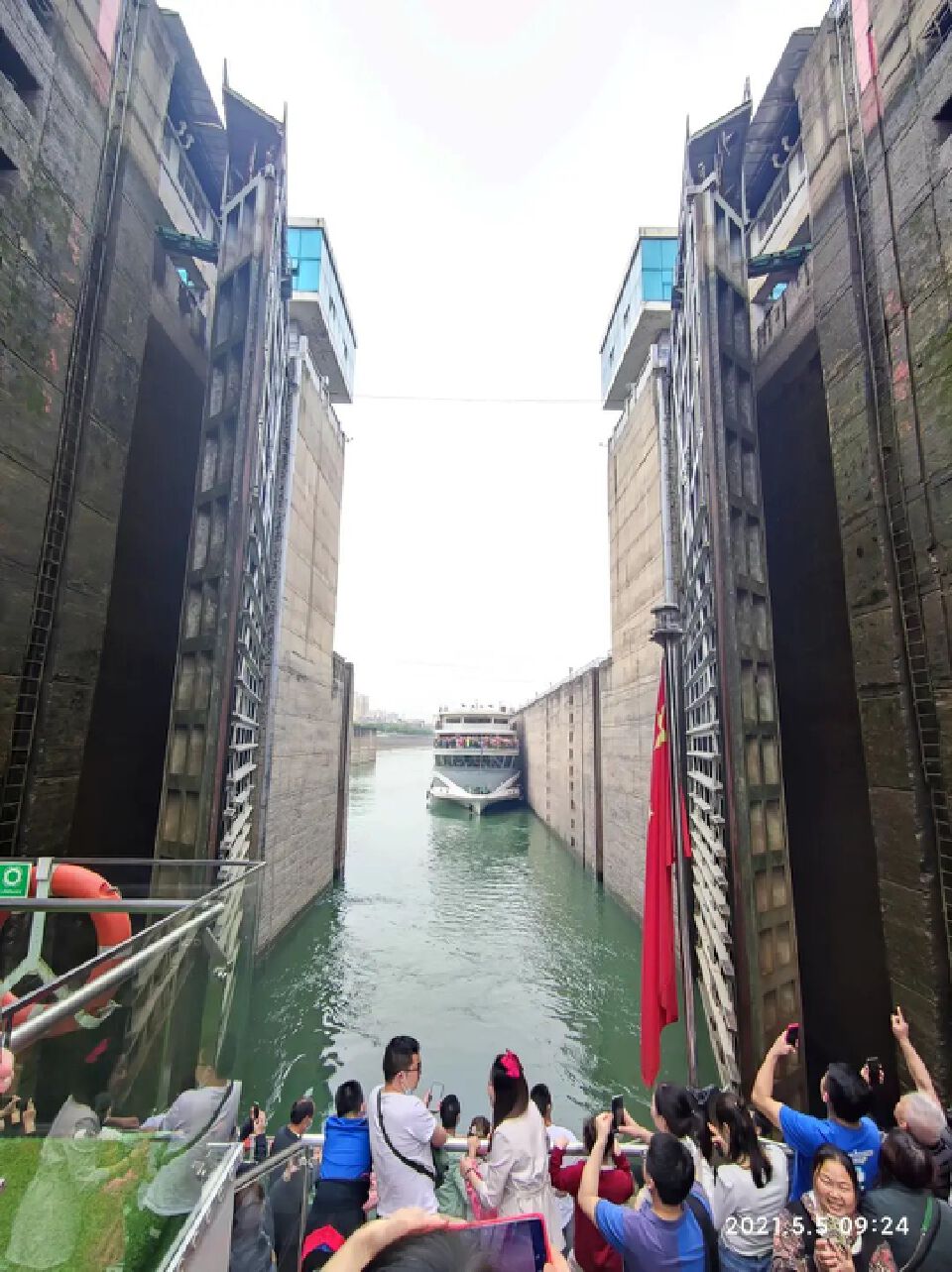 闸门缓缓地合闭,吱呀呀呀地钢铁摩擦声,悠远雄厚。三四层的游船,在闸门面前,犹如《移动迷宫》里面的小男孩的视角,高大威猛的架势,让人不寒而栗。