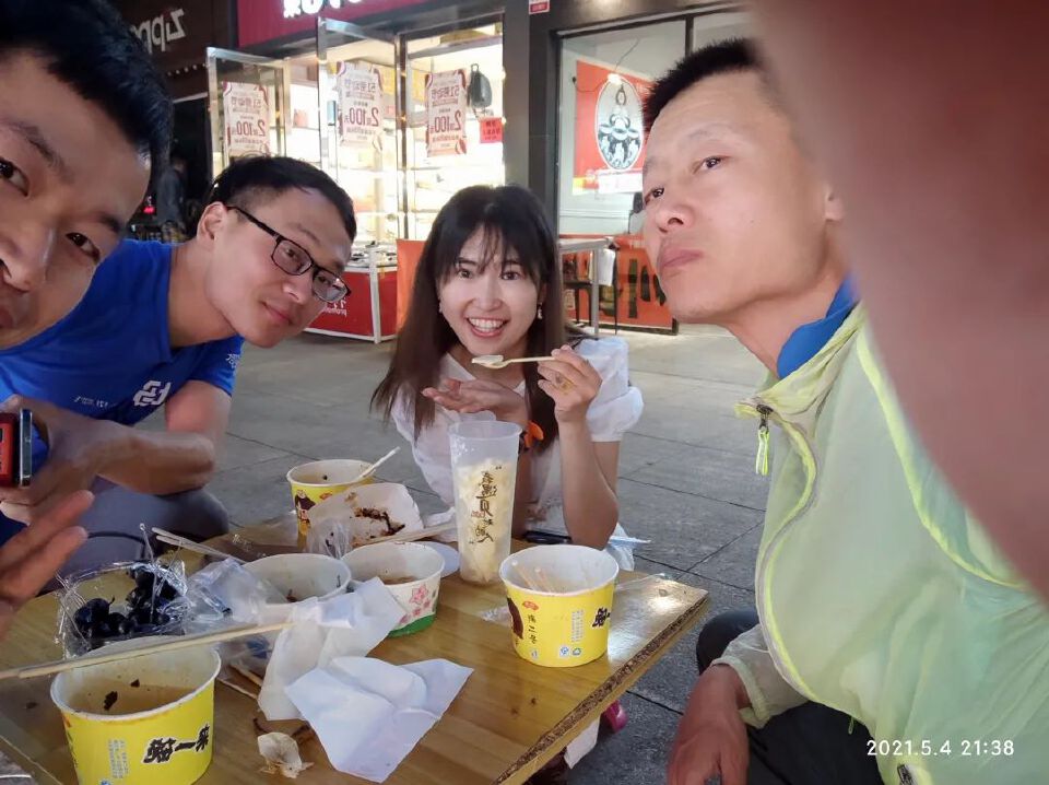 觅食期间,再次见着了阿尔米斯和微微。彼时,群里好几个饭局,我们也合影一张,用以声明:我们也不孤单[狗头]。。。