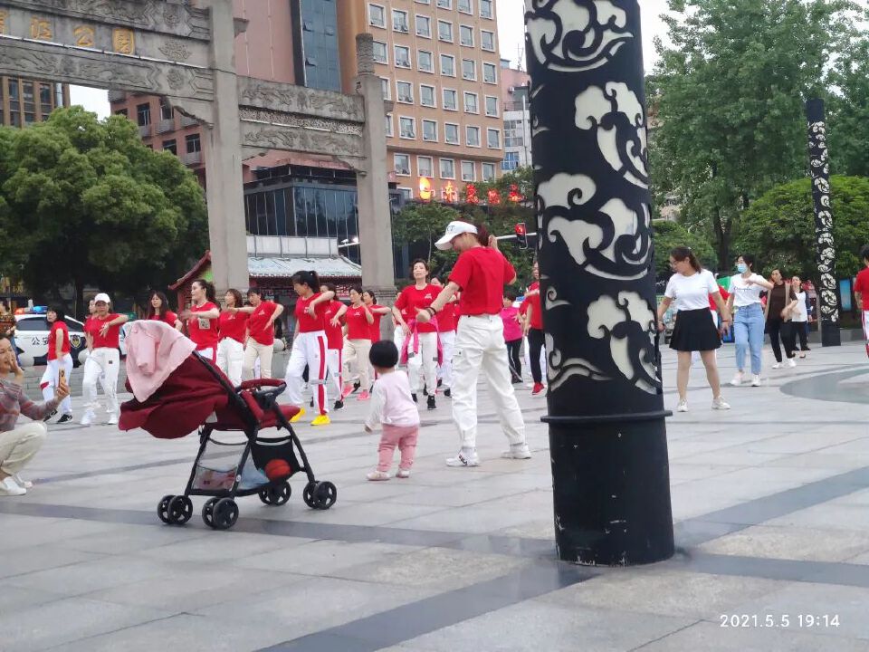 一位带着孙女的阿姨,先是抱着翩翩起舞,抱不动了,放下来,让她自己跳!站着会倒,但是随着节奏扭起来,轻盈灵动,一副专业演员的样子。
