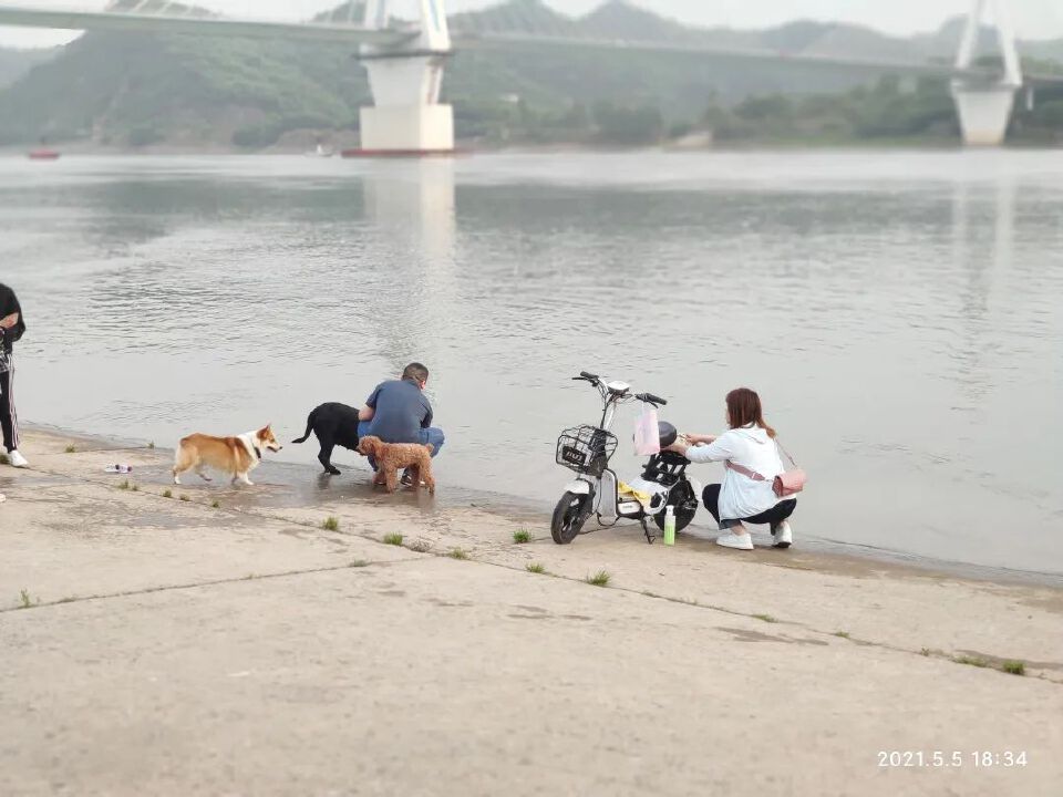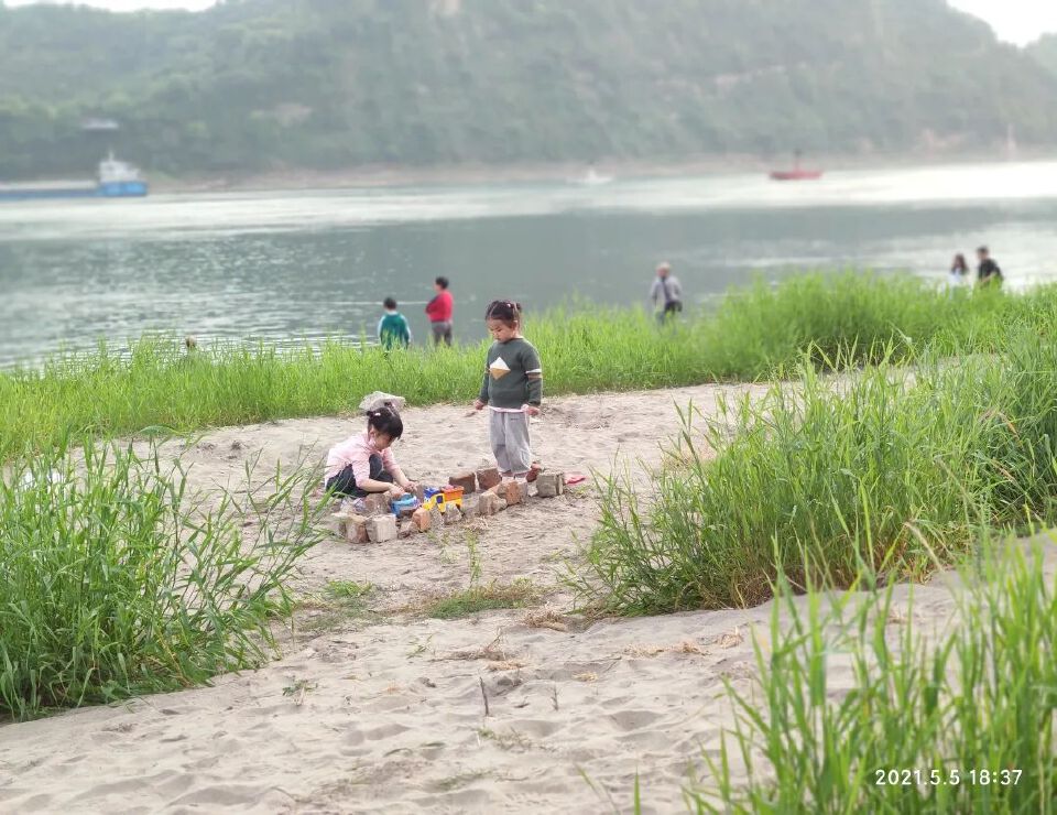 钓鱼的,边钓边聊天;延伸到水里的水泥路,洗车的和戏狗的,谁也没说谁弄脏了谁的水;铲沙的、建城堡的,做饭的小朋友,年龄段层次分明。