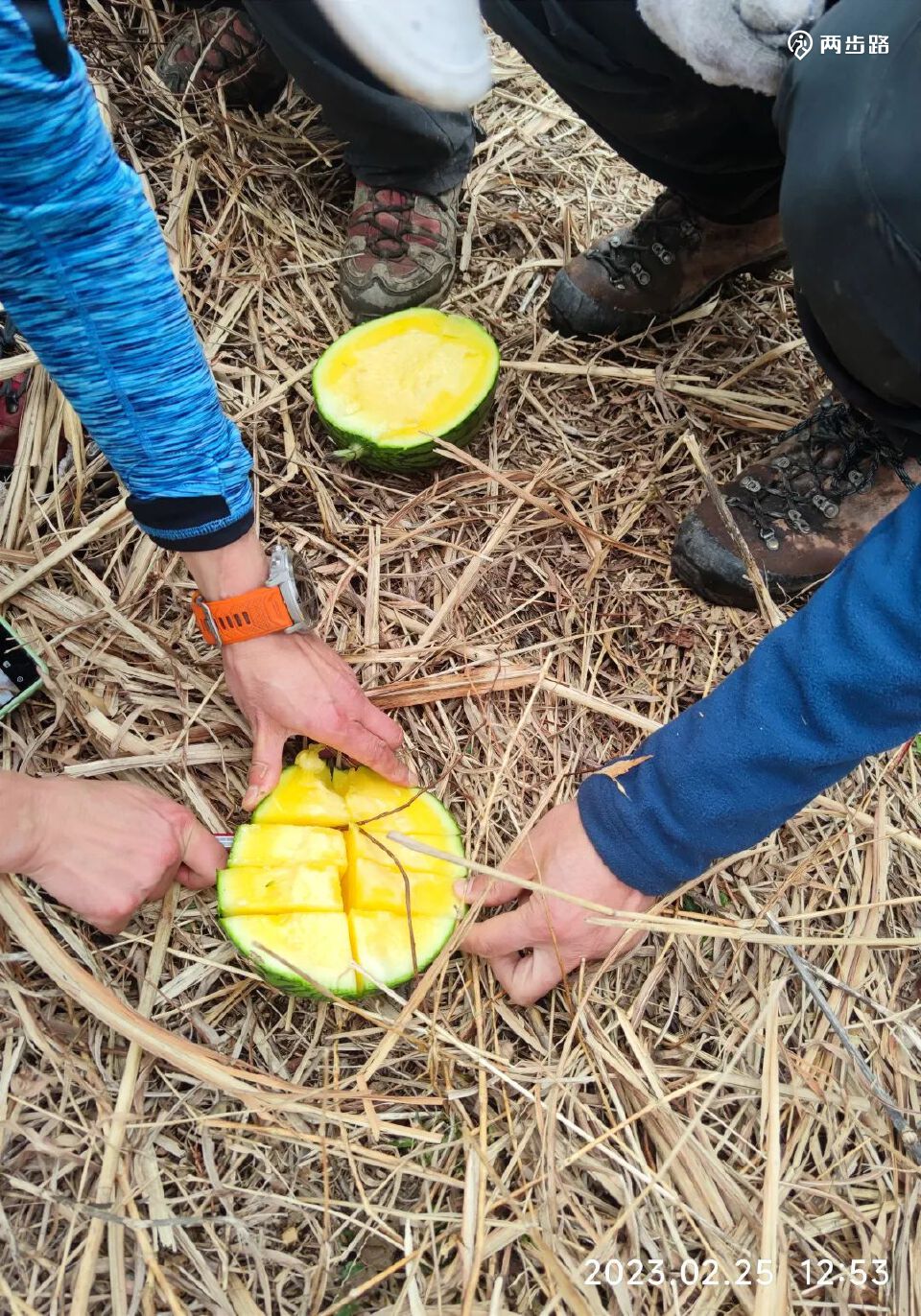 吃瓜,本次特意带了两瓜(失误买了黄色果瓤的),在此分食一个(晚上的一个没熟透)。