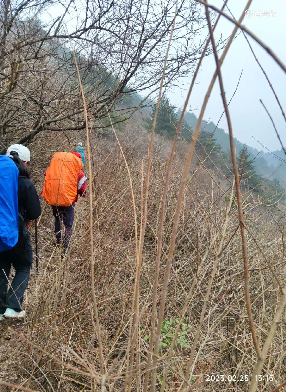 往田家棚下撤路口后的五百米处,等(喊话拐弯了却依然)错路的几位队友。
