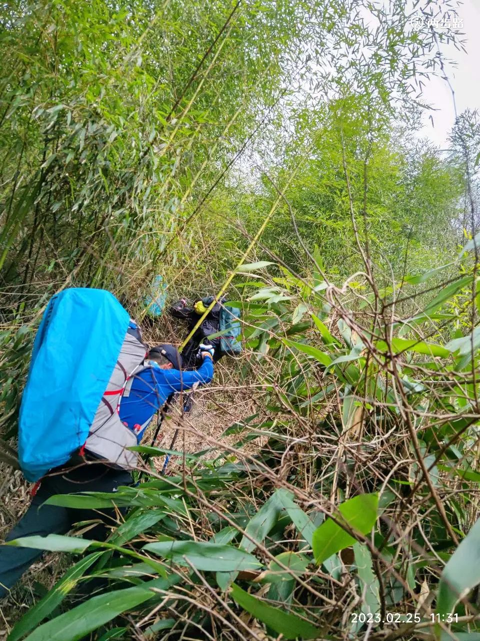 而过茶地后的一段,直接有路过不去(倒地竹挡路),等到迷路,更是硬干、硬闯、硬钻、硬爬、硬扯、硬拉!