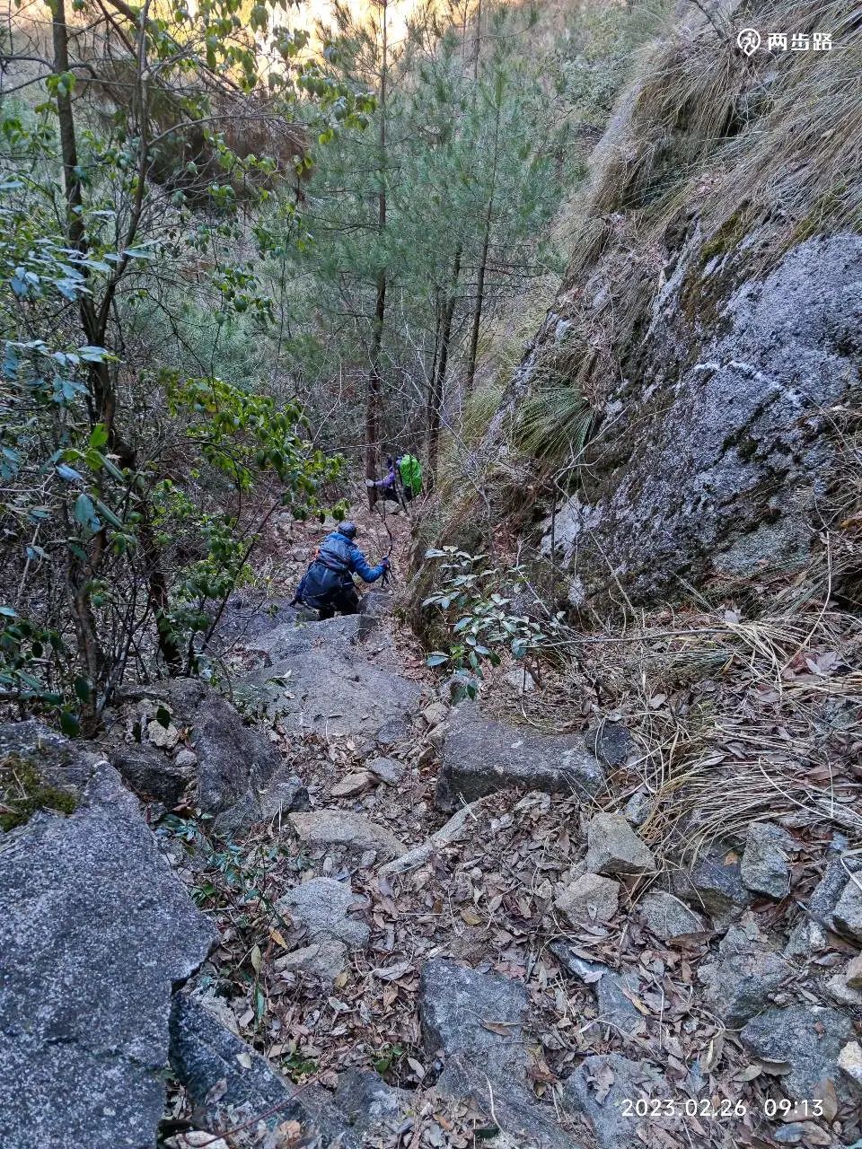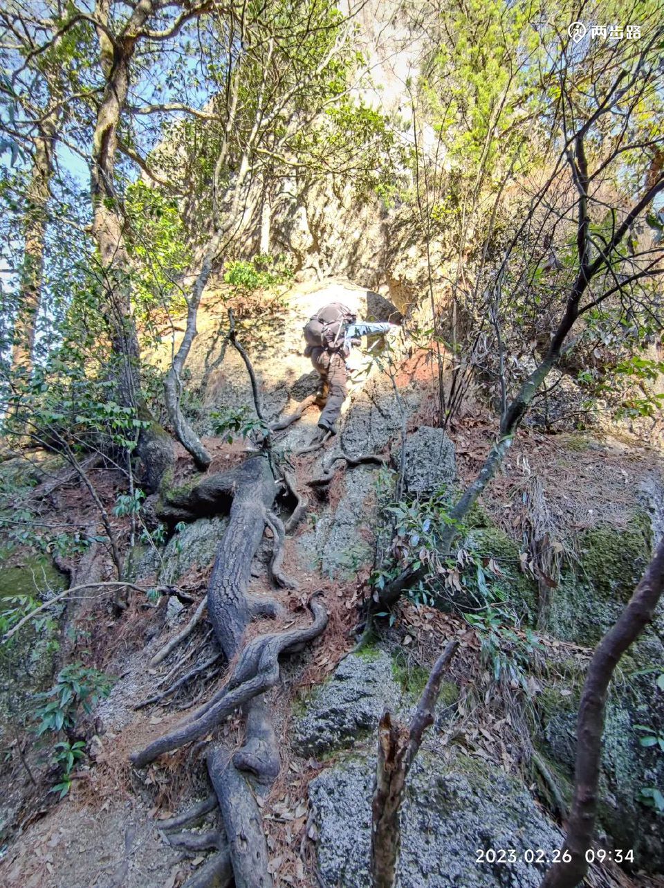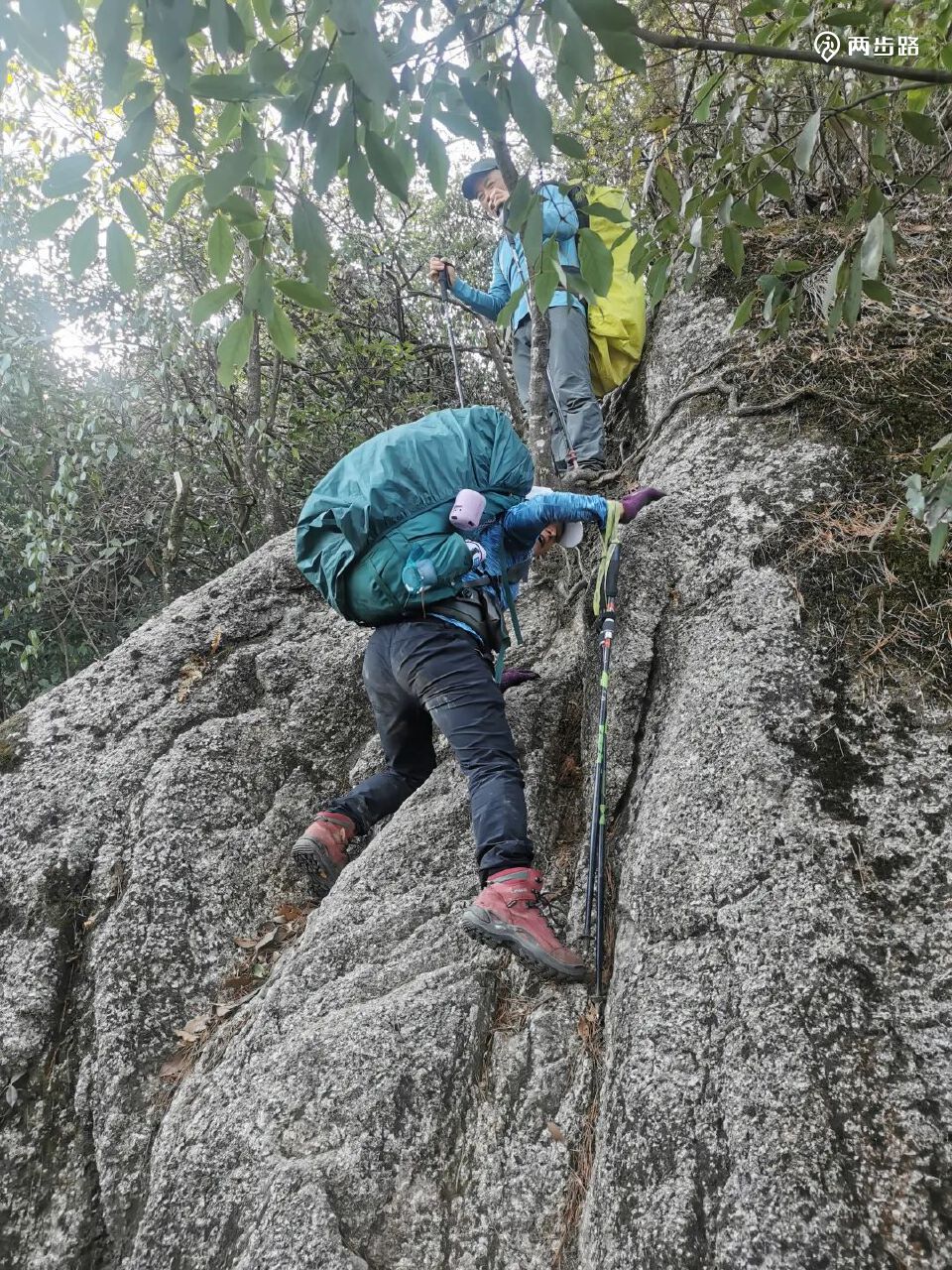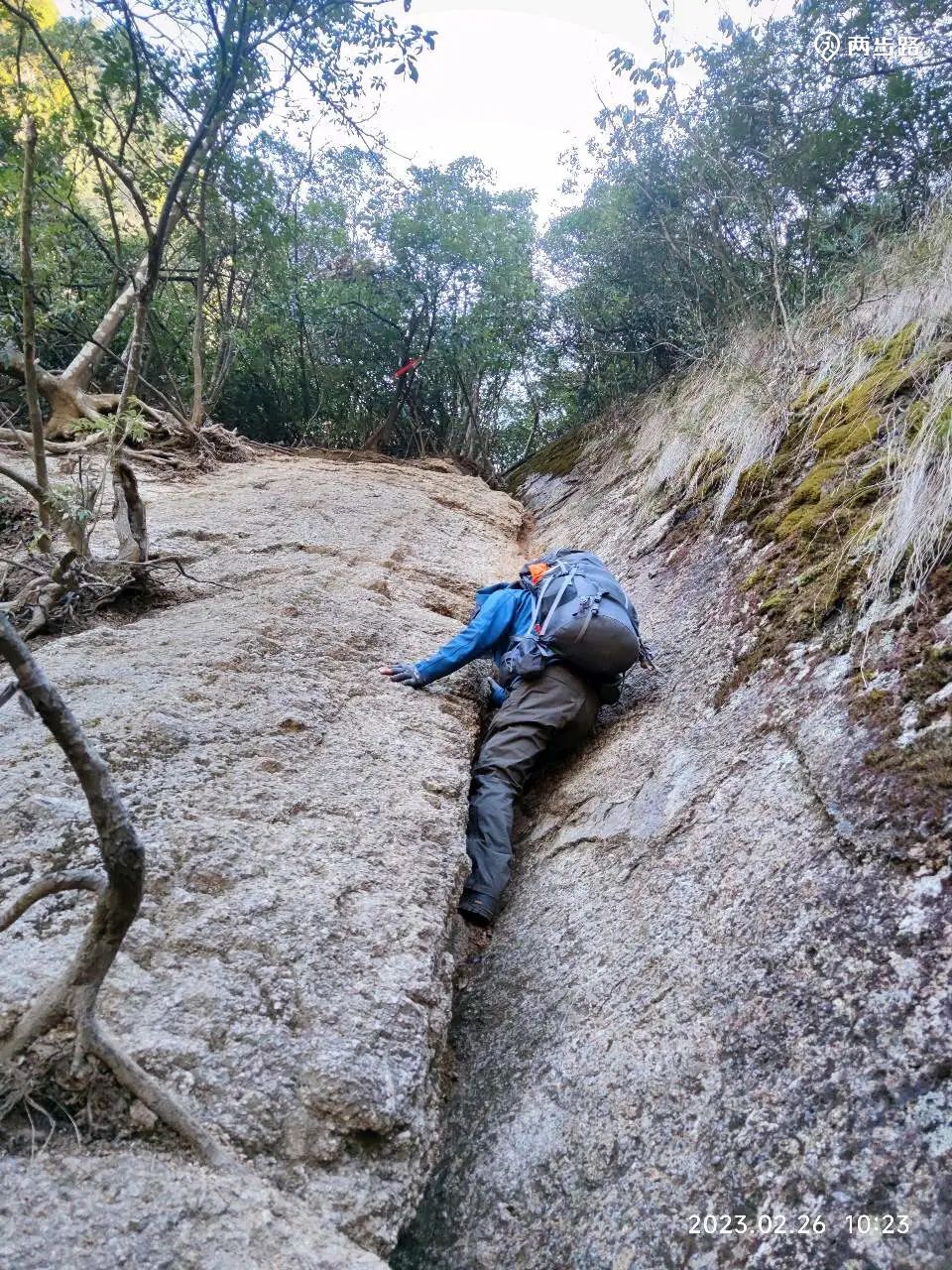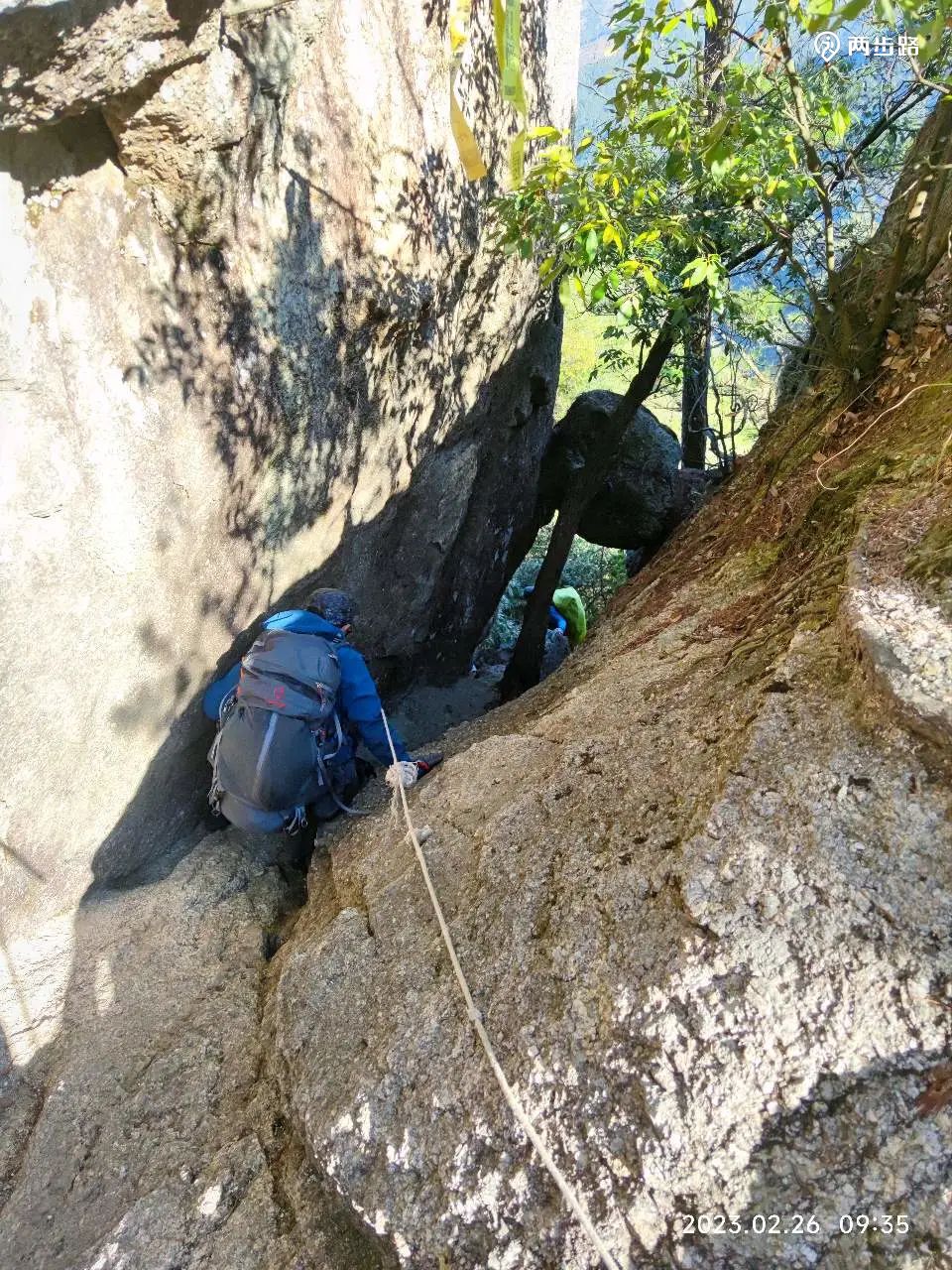 陡降、树根、攀爬、石缝、石台、绳降、滑石板、乱石,等,各种户外路上的罕见的路况,接踵而来。。。